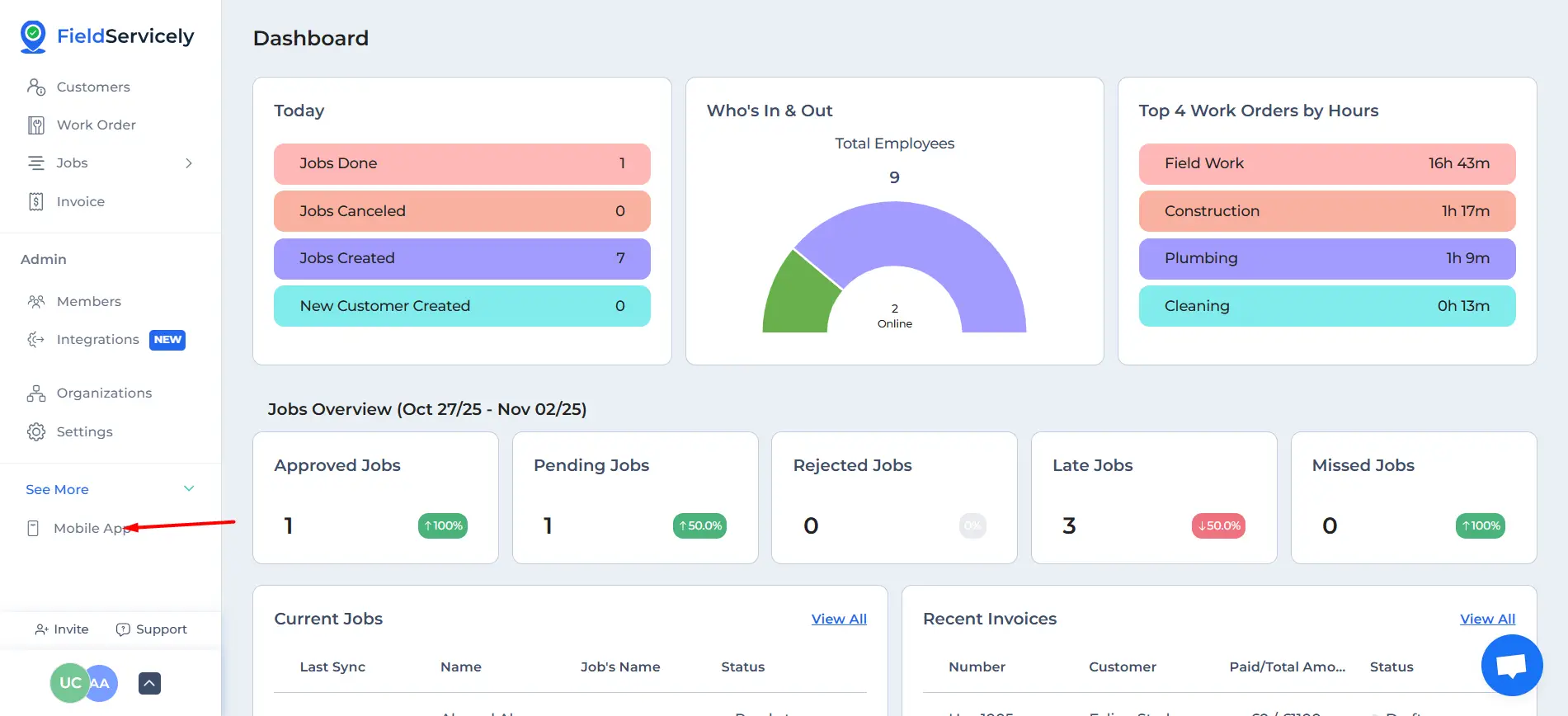 Once your members are out on the field and heading towards the job site, go to ‘GPS Tracking’ from the left sidebar.