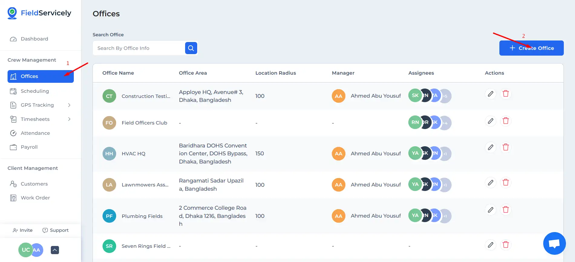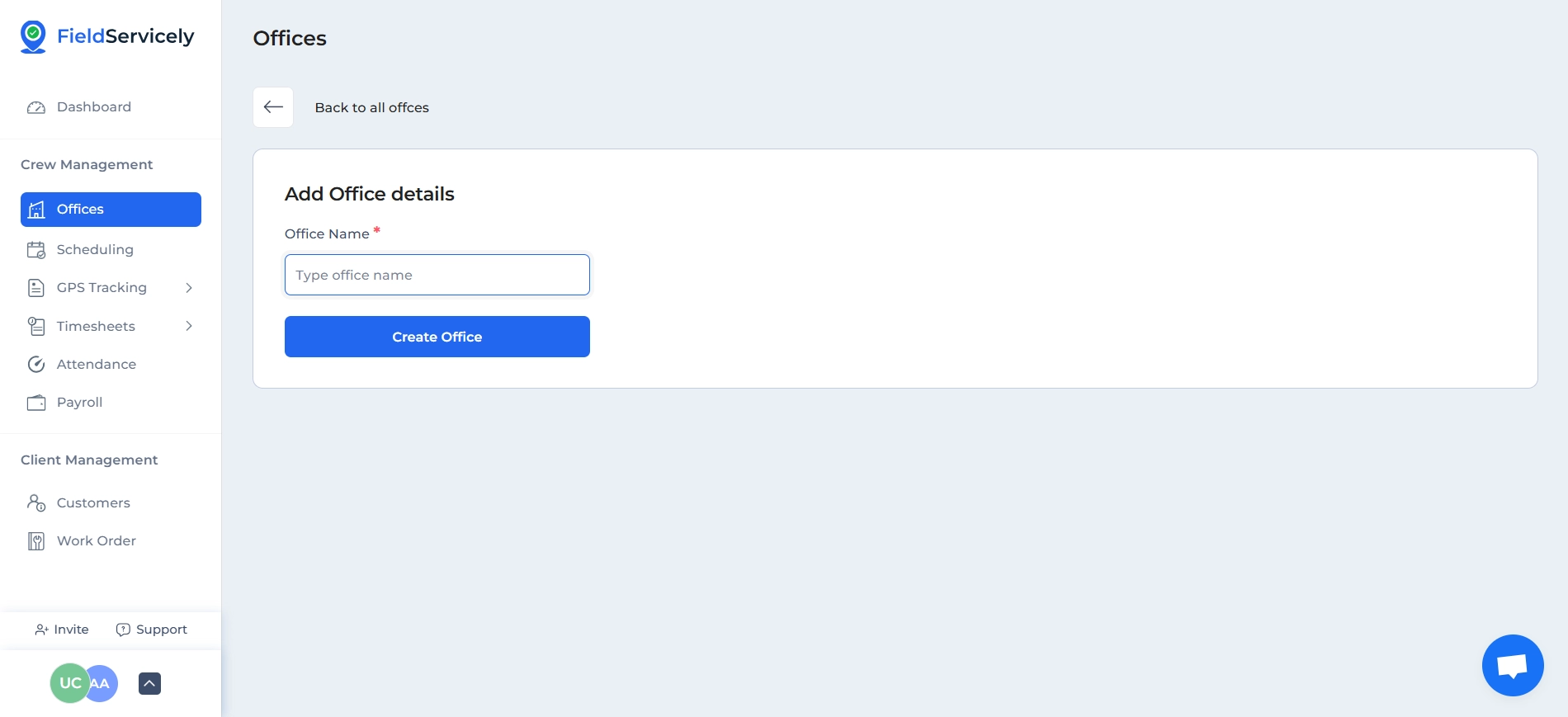 Click on ‘Offices’ from the left sidebar, and then click on ‘Create Office’.