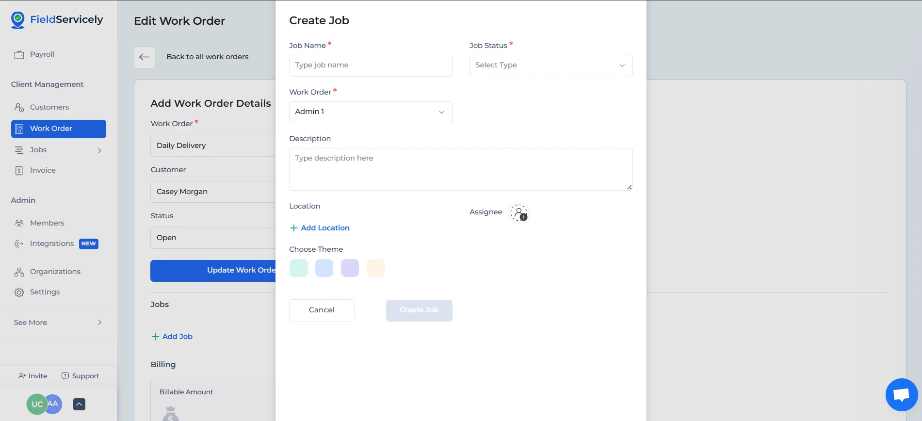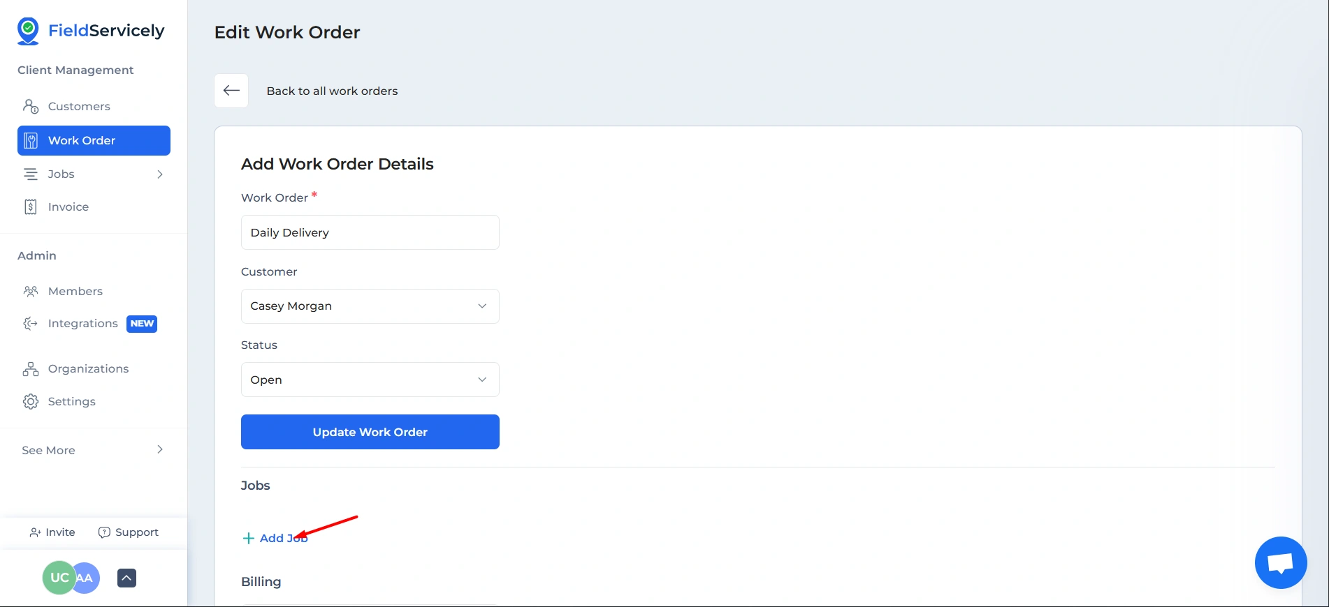 The first is through the Work Order you created. Click on the ‘Add Job’ under Jobs.
