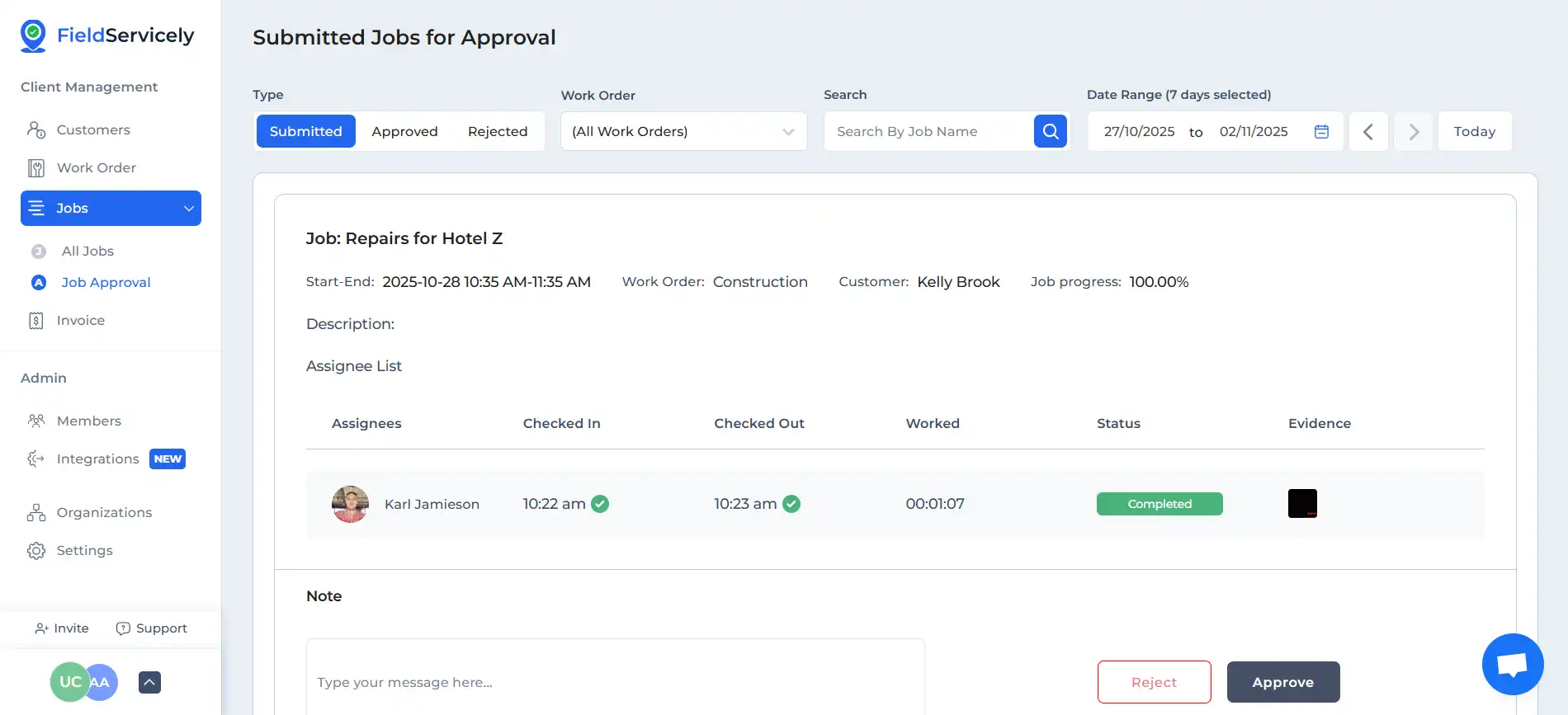 Here, you can see the evidence they submitted and decide if you want to approve or reject the job.