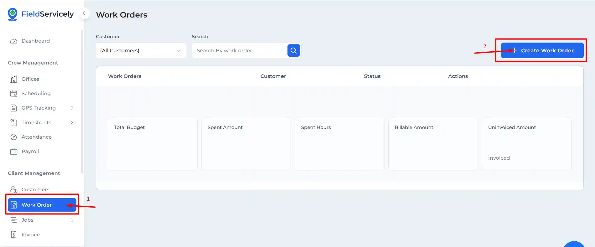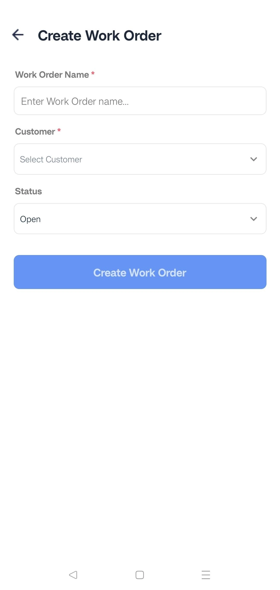 Click on ‘Work Order’ and then click on the ‘+ Create Work Order’ Button on the top right.