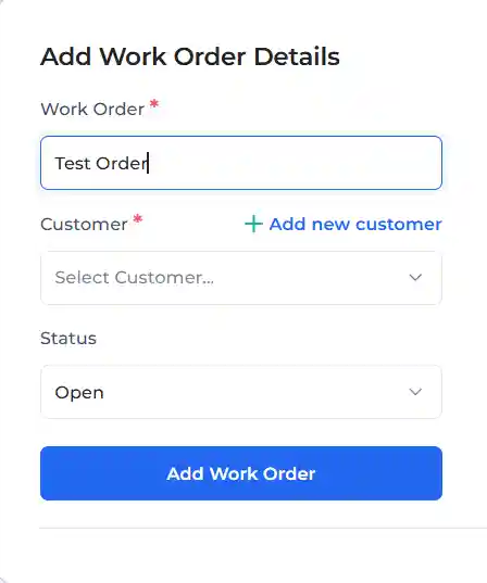 Fill up the customer form and tap on ‘Add Work Order" to finish the process.