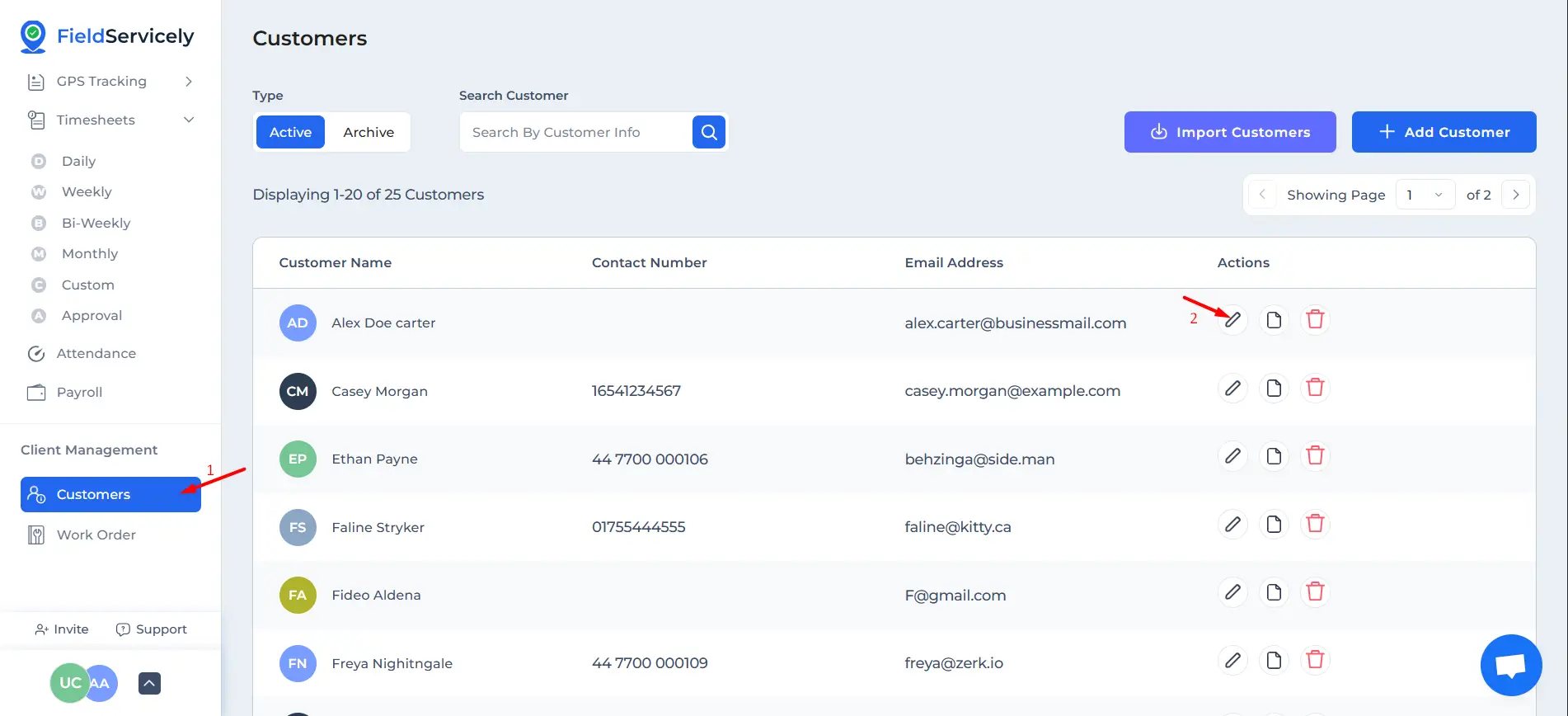 Tap on the ‘Customers’ tab from the left side menu and tap on the edit option under the customer you want to edit.