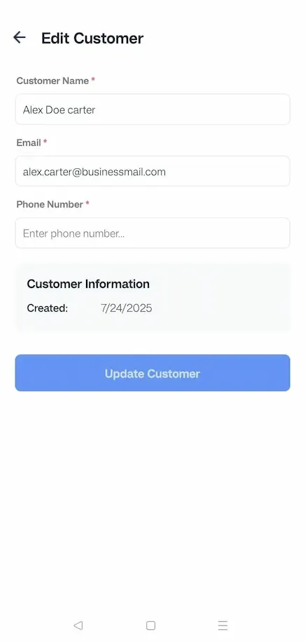 Edit what you want and tap on ‘Update Customer’ to save.
