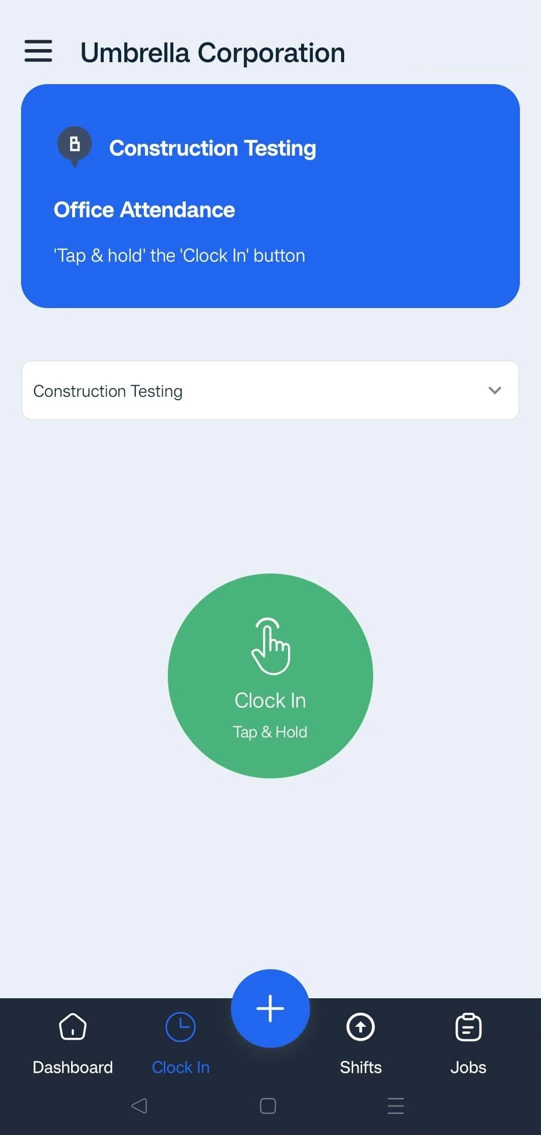 Log into your FieldServicely Account and tap on the ‘Clock In’ section from the navigation bar at the bottom.