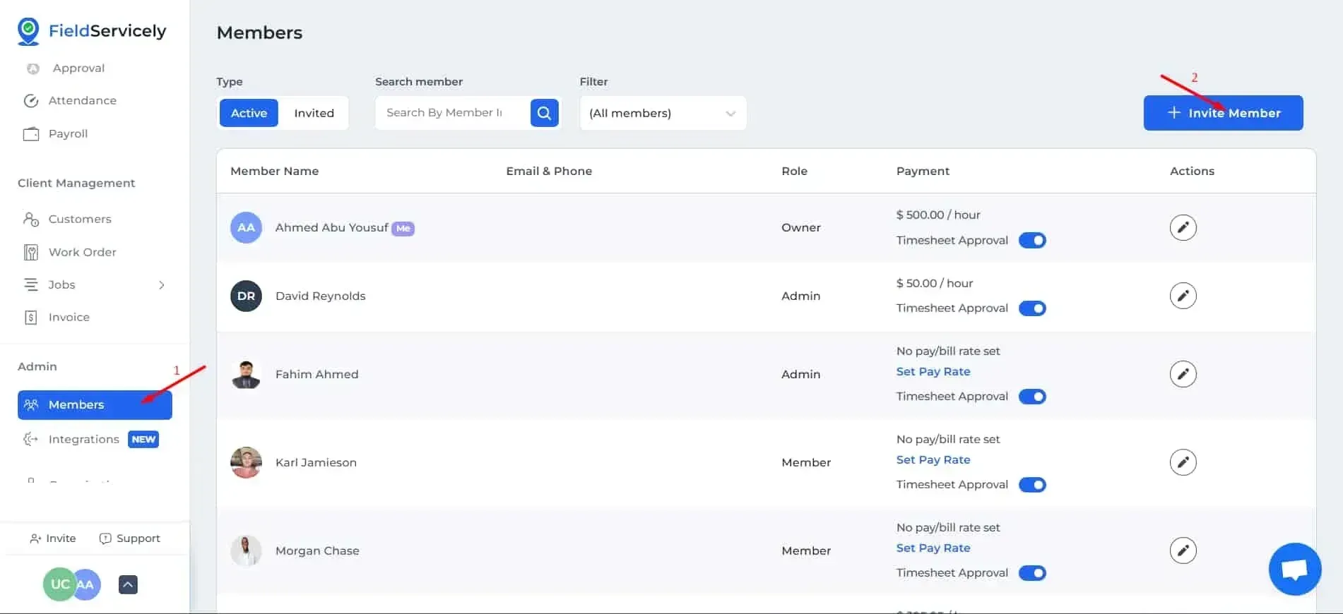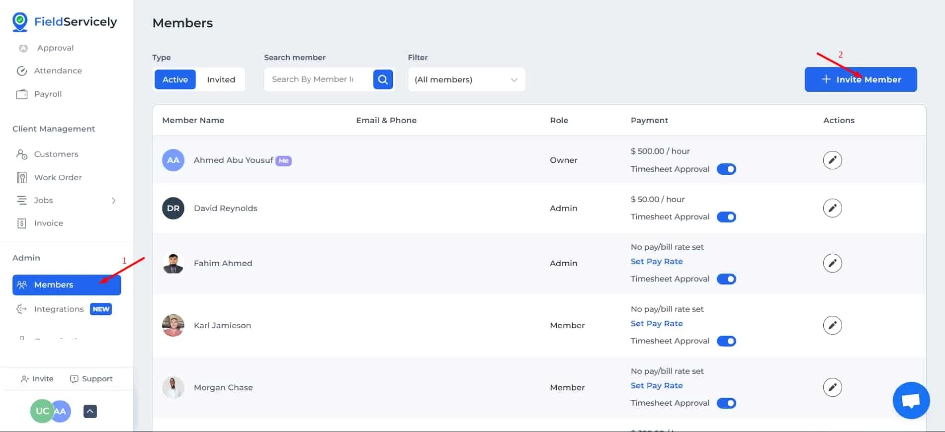 Click on ‘Members’ on the left side bar and click on the ‘+ Invite Member’ on the top right.