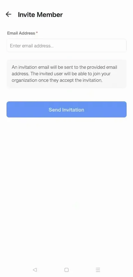 Type the email address and tap on ‘Send Invitation’ to finish inviting members.