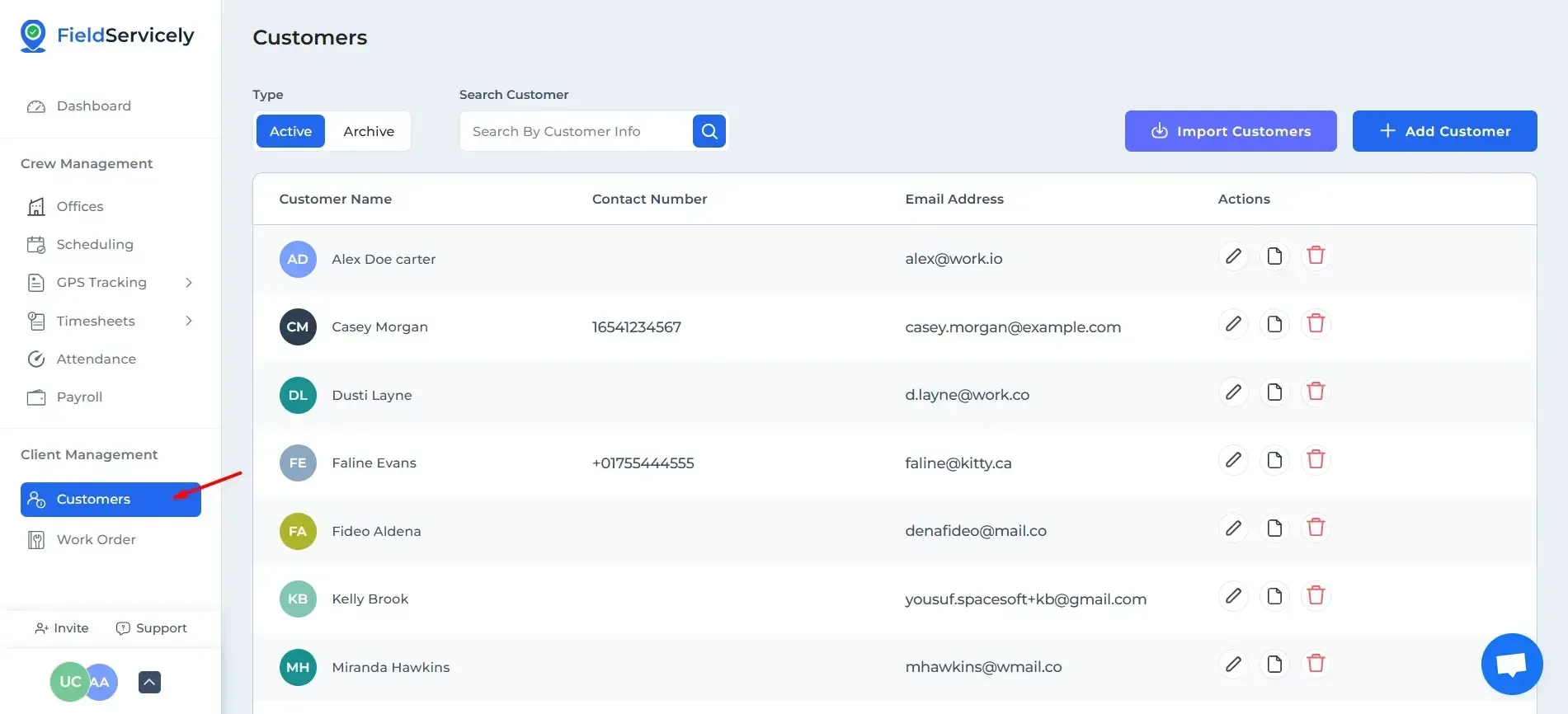 To view your customer’s job history, go to from the left sidebar and click on the customer you wish to see the history of.