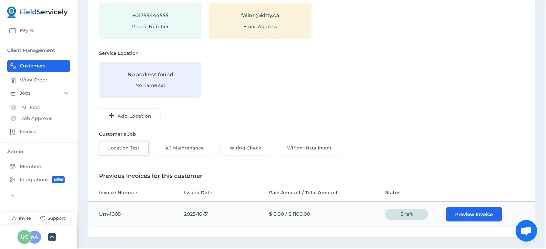 If you scroll a bit, you will see the jobs done for that customer, and clicking on them will show you details of it.