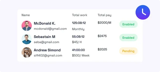 Turn tracked time into ready-to-pay, accurate payroll. Set hourly or fixed rates and let the system calculate everything.